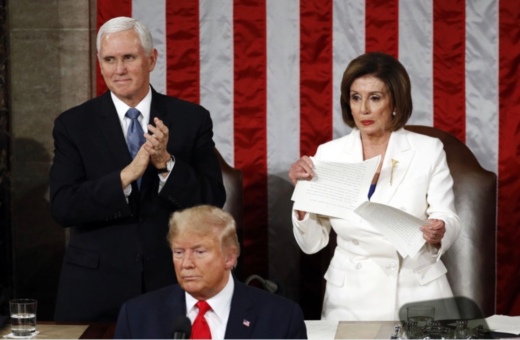 In this photo the speaker of the house, Nancy Pelosi was ripping up Trump’s State of the Union Address after he had just delivered it. I think this photo Argues the devision in our country. It is crazy to see two people in such power, work so poorly with each other. Pelosi and Trump have historically had a bad relationship and has only escalated now that she is a candidate for the 2020 presidency. Just before this picture was taken trump denied Pelosi of a handshake which also proves the tension between the two. Overall I think this photo truly encapsulated their hatred filled relationship, which may spill over between many Americans.